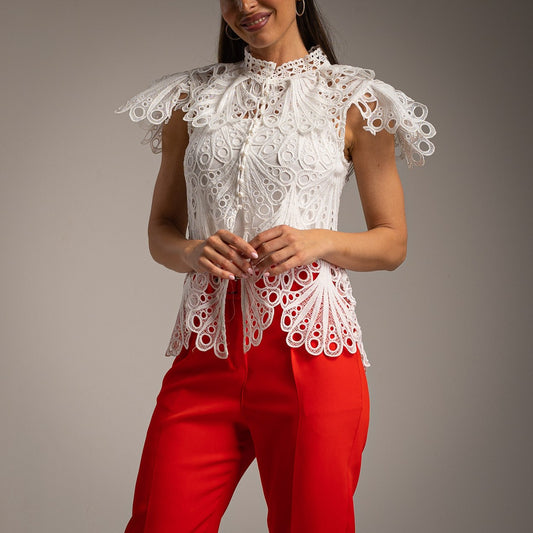 Asymmetrical Ruffle Flower Applique .Gracia Collection Top