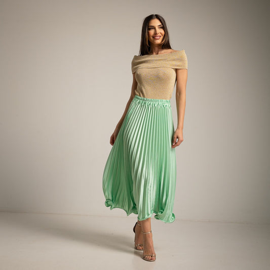 Sheen Mint Green Pleated Skirt Ruffled Hem